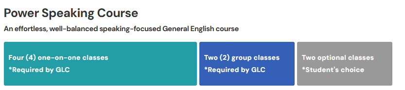 - ESL Power Speaking คลาสเรียนแบบตัวต่อตัว 4 ชั่วโมง และคลาสเรียนแบบกลุ่ม 4 ชั่วโมง