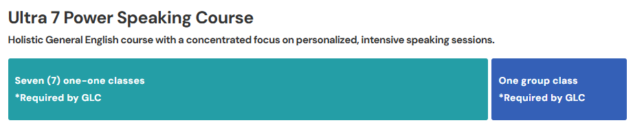 - Ultra7 Power Speaking คลาสเรียนแบบตัวต่อตัว 7 ชั่วโมง และคลาสเรียนแบบกลุ่ม 1 ชั่วโมง